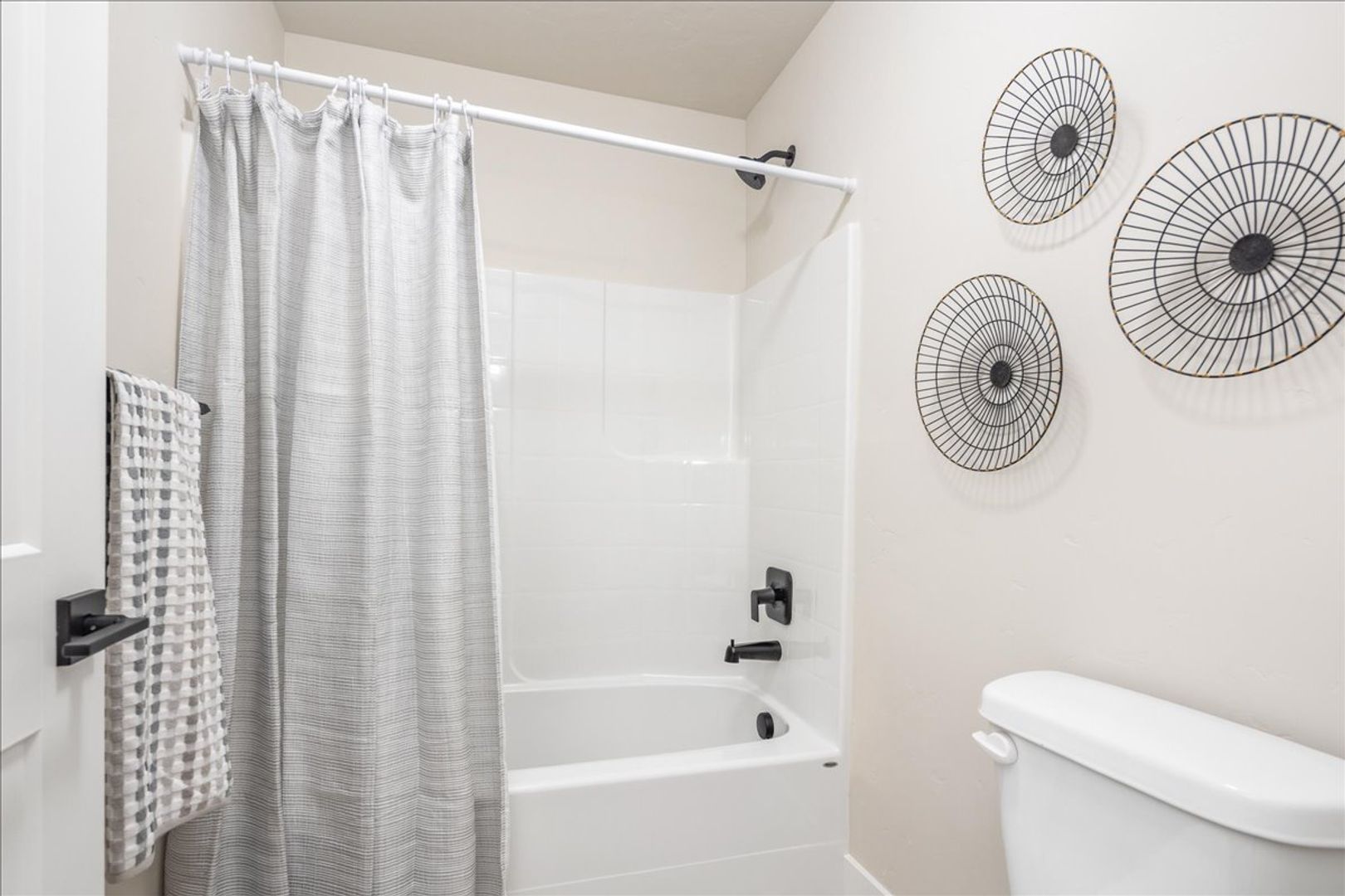 The main level primary suite offers a private retreat with a dual vanity en-suite bath, elegant tile finishes, and a walk-in closet, along with convenient access to the laundry room with washer and dryer hookups. Upstairs, two additional bedrooms share a well-appointed guest bath, while a large, light-filled bonus room overlooks the living area below. This versatile space is ideal for a home office, media room, or creative studio. Top down bottom up blinds throughout provide a balance of natural light, privacy, and views, while an energy-efficient HVAC system with a Nest thermostat ensures year-round comfort.