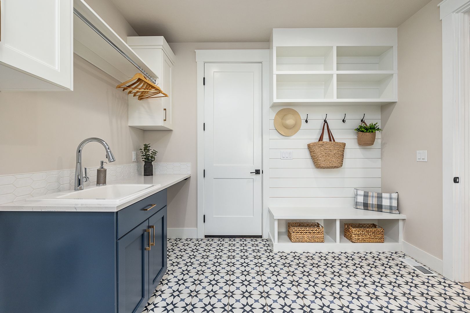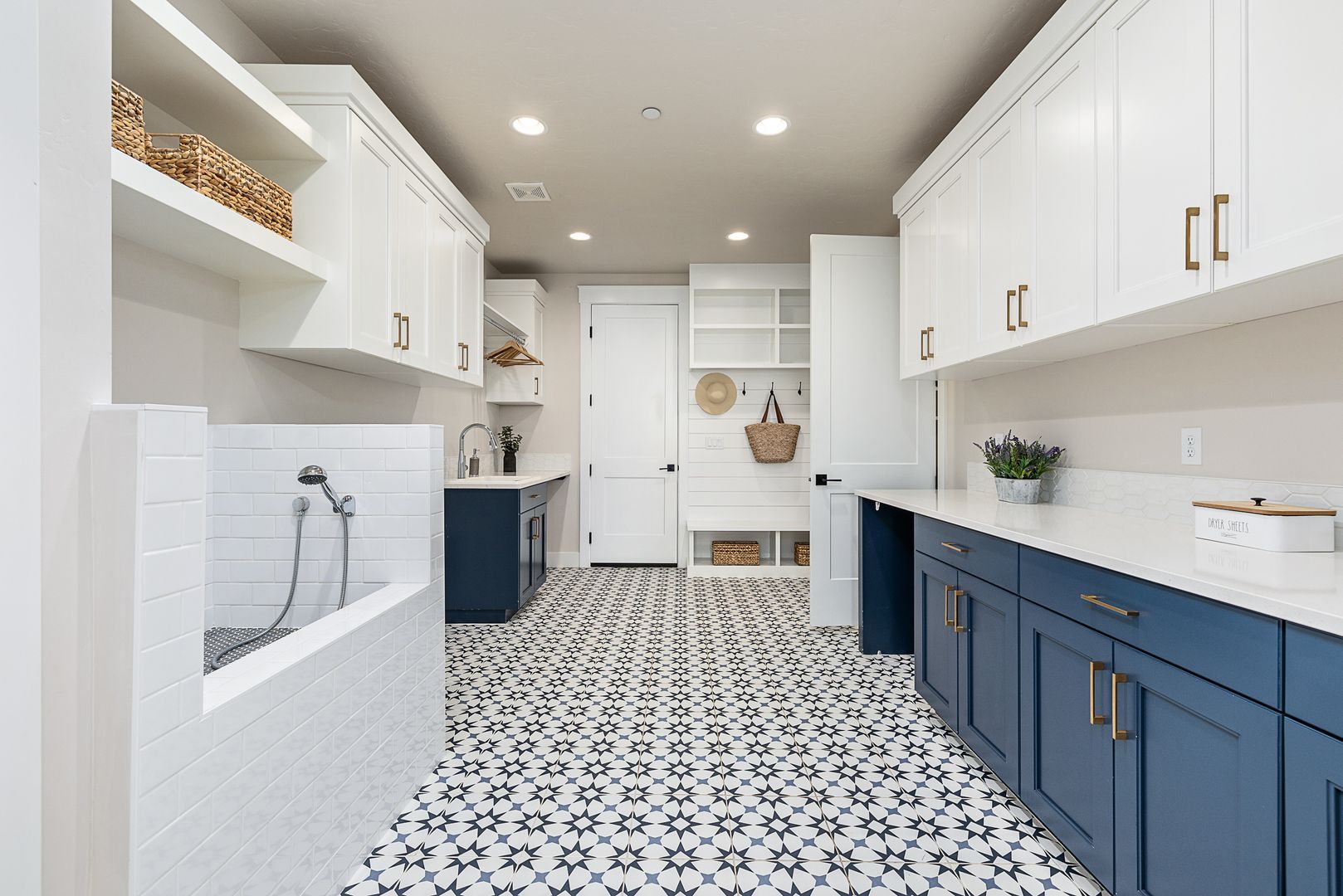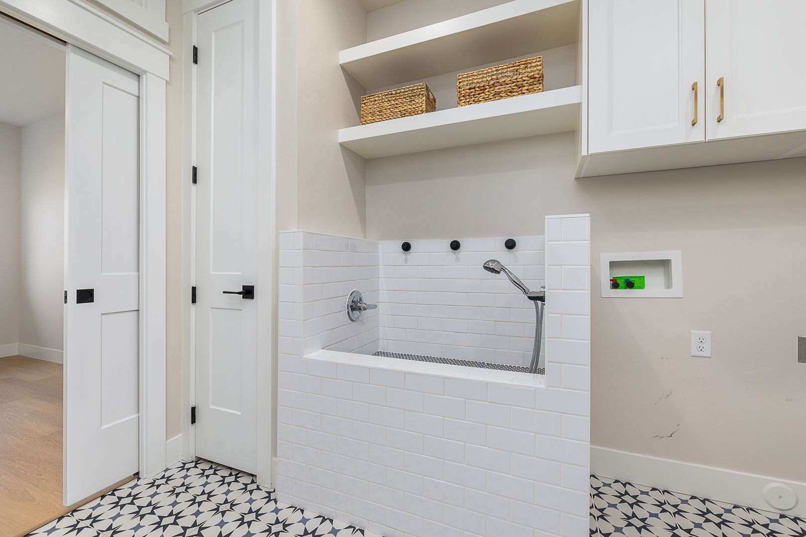 LUXURY UTILITY SPACES & SUPERIOR STORAGE: The oversized Laundry Room is an amenity unto itself, featuring abundant custom cabinetry, ample counter space, and a unique pet-friendly dog-wash station and washer and dryer hookups. The attached three-bay garage has a dedicated, built-in storage room at the rear, and a separate, backyard-accessed Garden Garage—perfect for securing tools, bikes, and specialized equipment.