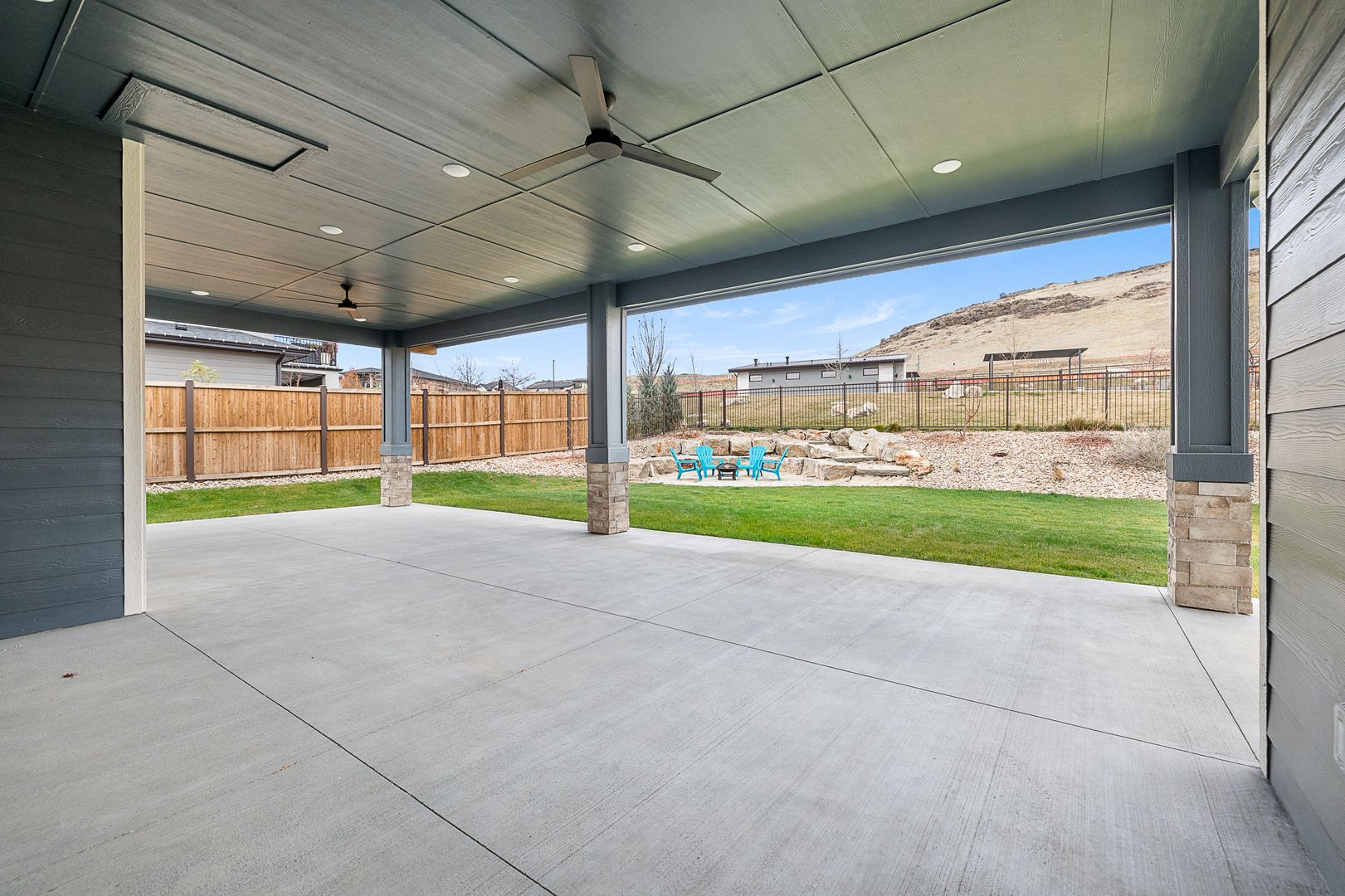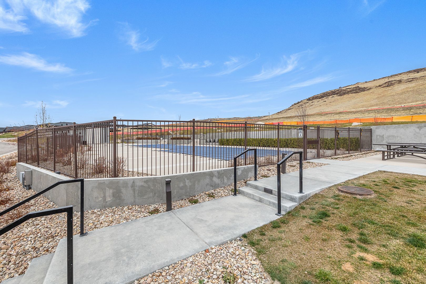 ENHANCED OUTDOOR LIVING: The covered patio provides an extravagant outdoor entertaining area, offering a peaceful vantage point framed by picturesque foothill vistas and meticulous mature landscaping. The property’s coveted position with no side or rear neighbors guarantees a quiet, private outdoor experience, with the community pool and park just steps away.